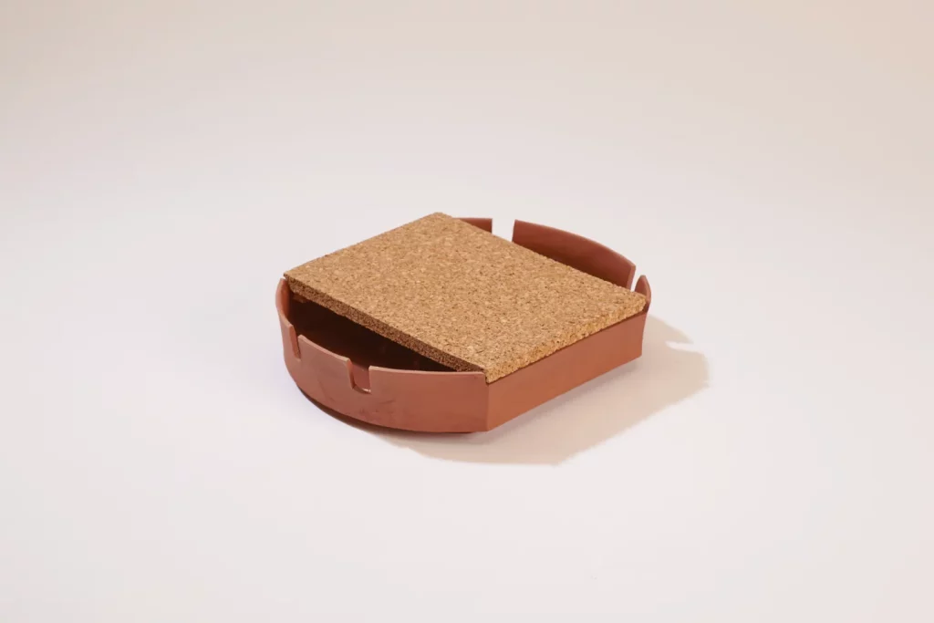 Heiner refers to the Bauhaus anniversary. Inspired by the Dornburger workshops. As part of a product family, its design follows various parameters that are recurring in all objects. The shape adapts to the function: the offset openings act as a shelf for cutlery. Three small bars inside prevent the cutlery from slipping. The lid, as a visual and haptic contrast, also fulfills a protective function.