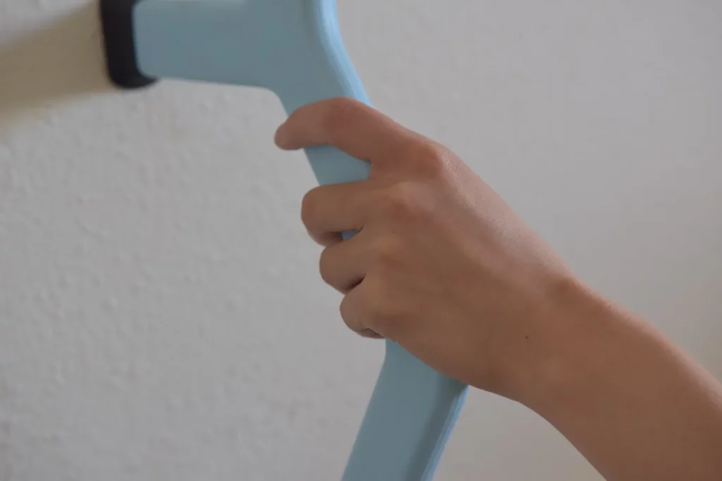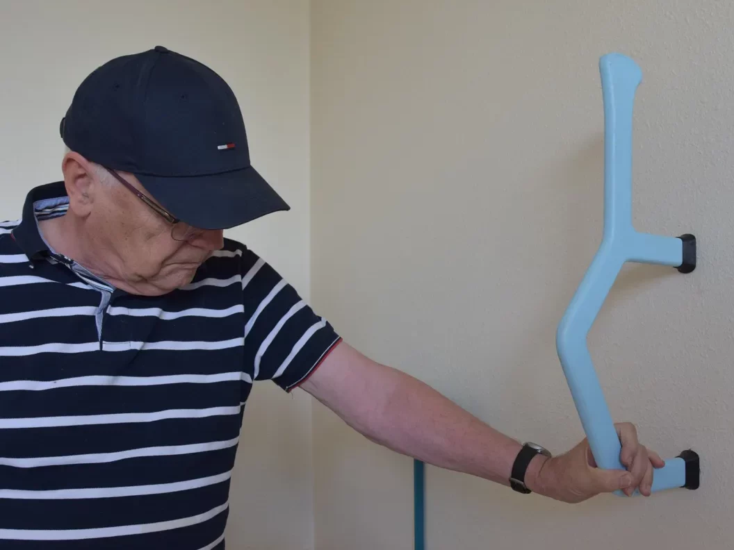 A specific handle designed to prevent falls. The organic design is conceived for an ergonomically comfortable grip. The handle can be mounted in various positions.